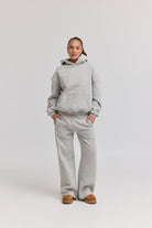 Our wide-leg pants are a wide-leg track pant with an elasticated waistband and drawstring designed to sit at the mid-waist.