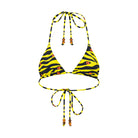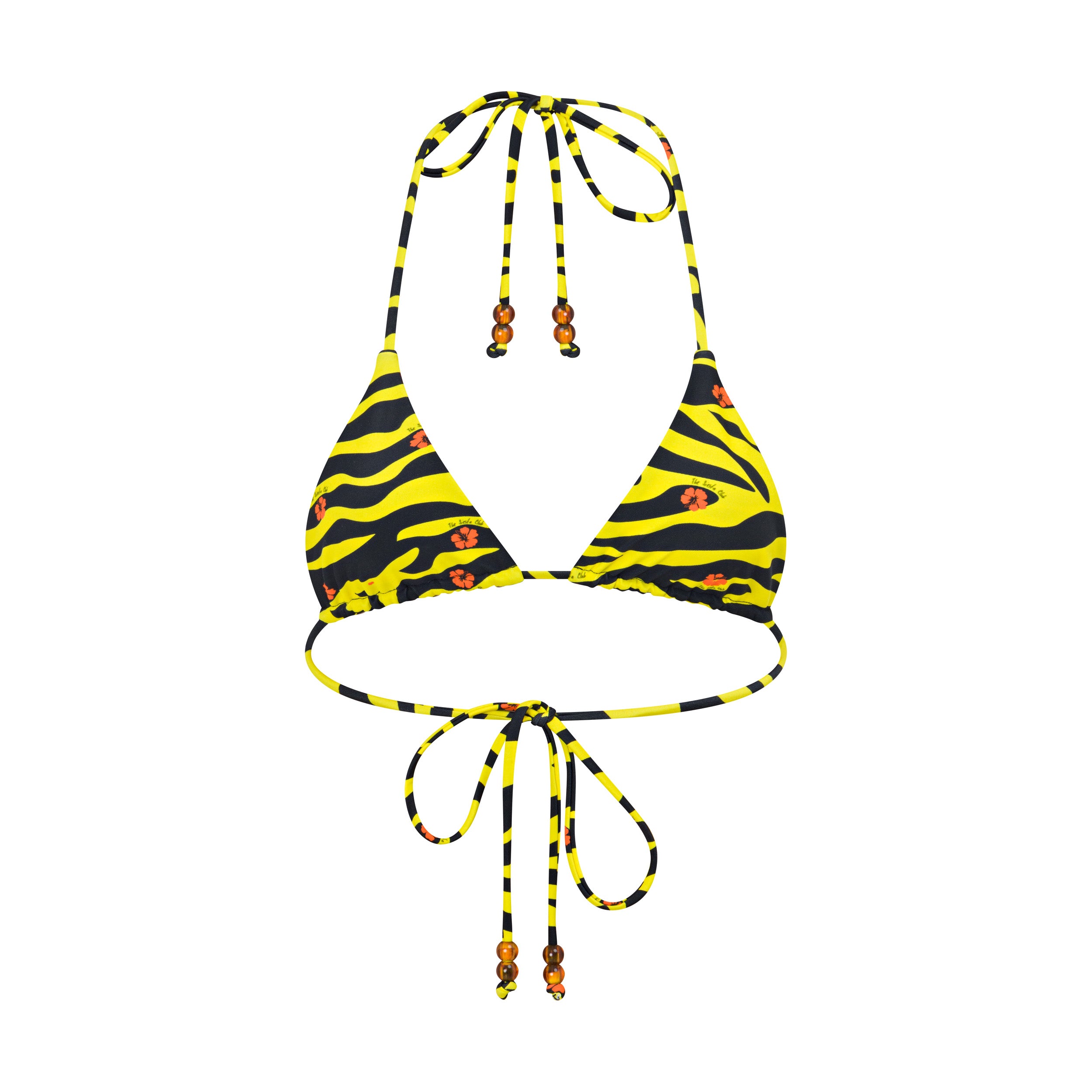 Our Brazilian Triangle Bikini Top is a halter style featuring simplistic coverage and an adjustable neck and back tie. Featuring a hand-drawn zebra print design & hibiscus detailing, this is your perfect summer uniform.