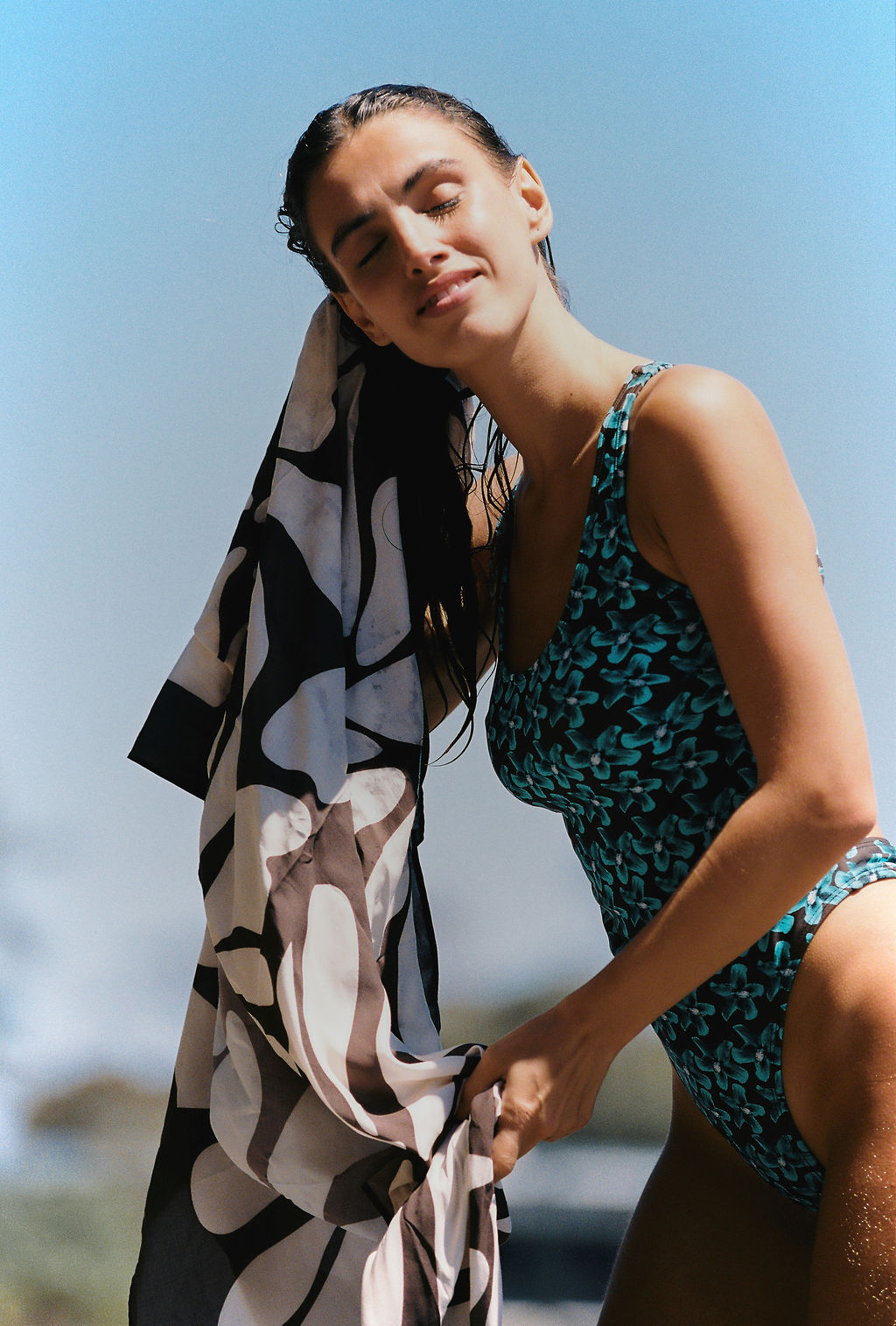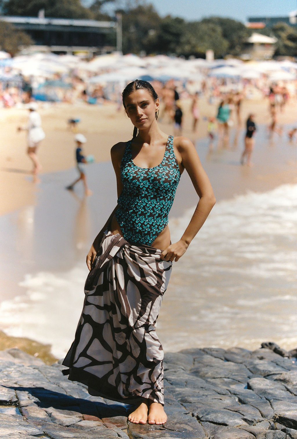 Effortlessly versatile, our long sarong is a must have for island getaways and sun drenched escapes. Crafted from lightweight, breathable fabric that drapes beautifully, it can be worn long for an elegant wrap, tied short for a playful beach look, or styled in multiple ways to suit your mood. Perfect as a beach cover up, a chic skirt, or even a halter dress, it transitions seamlessly from sandy shores to sunset cocktails. A timeless resort essential designed to travel light but style heavy.