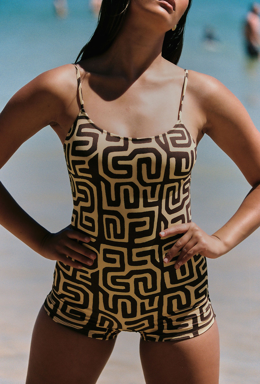 Crafted for active beach days, the suit offers a secure fit with adjustable spaghetti straps and a high leg cut for comfortable coverage whether you're paddling out or lounging under palm trees. The high stretch fabric moves with you, dries quickly, and holds up against saltwater and sun.